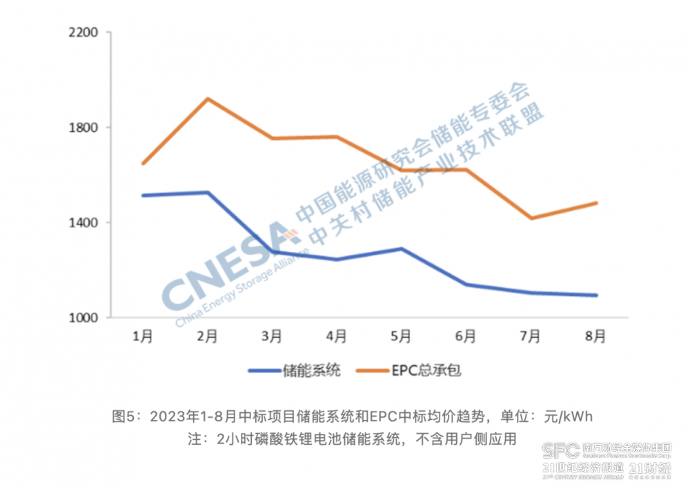 根據(jù)中關(guān)村儲(chǔ)能產(chǎn)業(yè)技術(shù)聯(lián)盟(CNESA) DataLink全球儲(chǔ)能數(shù)據(jù)庫的統(tǒng)計(jì),今年以來,儲(chǔ)能系統(tǒng)中標(biāo)價(jià)格的持續(xù)下滑:今年1月,儲(chǔ)能系統(tǒng)價(jià)格從1.5元/附近,到今年8月份,其價(jià)格已接近1元/Wh。