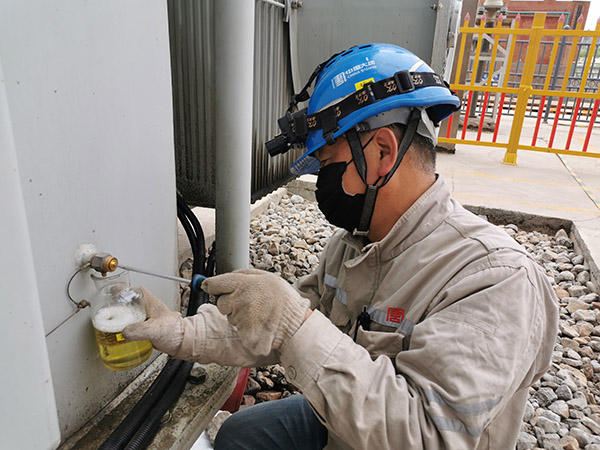活動中,該公司嚴格按照中國大唐集團有限公司、大唐內蒙古分公司對危化品的管理要求,統(tǒng)一組織、認真排查,做到全覆蓋、無死角、無盲區(qū)。為切實加強?;返陌踩O(jiān)督管理,嚴防重大事故發(fā)生,該公司結合實際,針對性對主變壓器絕緣油、SF6氣體裝置進行了全面徹底的安全專項檢查。從油樣采集校驗、SF6氣瓶外觀、銘牌字跡、瓶蓋密封等多方面進行查看,同時對日常巡視資料、使用?;酚涗?、校驗報告日期進行摸底抽查。除此之外,針對?;肥欠癜匆?guī)定分區(qū)、分類儲存,是否貼有危化品標識,室內是否采用防爆照明等項目進行檢查,切實有效控制安全事故發(fā)生。
