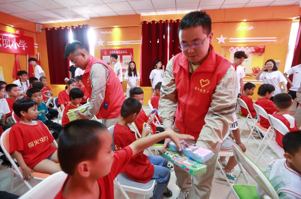 活動(dòng)中,志愿者向小朋友們播放了百集微紀(jì)錄片《信物百年》第43集《渡江戰(zhàn)役第一船“京電輪”》,一起了解在大唐集團(tuán)澎湃發(fā)展歷程背后有著“渡江第一船”之稱的英雄船——“京電輪”的故事,引導(dǎo)他們傳承紅色信仰,堅(jiān)定理想信念。在電力安全課上,為讓深?yuàn)W難懂的火電廠生產(chǎn)流程及環(huán)保工藝變得更易于理解,志愿者們通過(guò)精美PPT和現(xiàn)場(chǎng)設(shè)備實(shí)體畫(huà)面相結(jié)合的形式將火電廠生產(chǎn)流程及環(huán)保工藝進(jìn)行呈現(xiàn),用實(shí)驗(yàn)與講課相結(jié)合的方式讓電路變得具象而生動(dòng)。答題環(huán)節(jié)中,小朋友們踴躍舉手,將自己剛學(xué)習(xí)理解的電路知識(shí)說(shuō)出來(lái),加強(qiáng)了學(xué)生們對(duì)于電力生產(chǎn)知識(shí)及安全用電知識(shí)的了解。此外,志愿者們還精心準(zhǔn)備學(xué)習(xí)用品,鼓勵(lì)同學(xué)們努力學(xué)習(xí),天天向上。