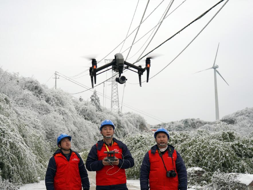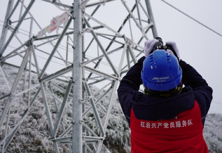 中國電力網(wǎng)訊 “110千伏四黎線今日最大覆冰厚度7.9毫米,目前風速3.5米每秒,溫度零下4度……”“小心一點,要走兩邊有草叢的地方,中間的道路結(jié)冰了,容易滑倒。”1月9日,國網(wǎng)重慶武隆供電公司輸電運維檢修班成員吳鼎、趙樓等人來到武隆區(qū)和順鎮(zhèn)四眼坪鄉(xiāng)對覆冰線路開展特殊巡視。在白雪皚皚的四眼坪,國家電網(wǎng)紅巖共產(chǎn)黨員服務隊隊服的顏色成了冰雪世界里最靚麗的一抹紅,他們手拿著無人機、砍刀、繩索、望遠鏡、風速儀等設(shè)備再一次踏入他們熟悉的“冰雪戰(zhàn)場”。