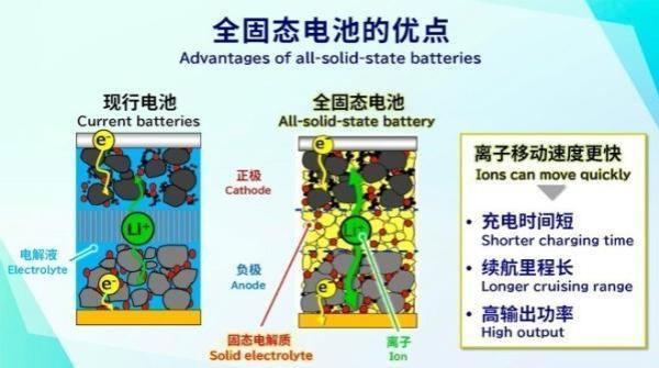 在鋰離子電池中,鋰離子經(jīng)由液體電解質(zhì)從負(fù)極移動到正極,由此產(chǎn)生電流。全固態(tài)電池原理與之相同。理論上,固態(tài)電池的能量密度是鐵鋰電池的2倍,且固態(tài)電池還擁有耐高溫、抗穿刺的超高安全性,以及寬溫域工作窗口等眾多優(yōu)點(diǎn)。