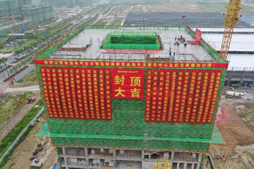 為了確保施工進(jìn)度,總包方充分利用空閑時(shí)間,全員加班加點(diǎn),在確保質(zhì)量的同時(shí)與時(shí)間賽跑,最終如期完成生活服務(wù)中心及綜合樓中--九層辦公樓的土建工作,并于7月9日9時(shí)9分舉行了封頂儀式。