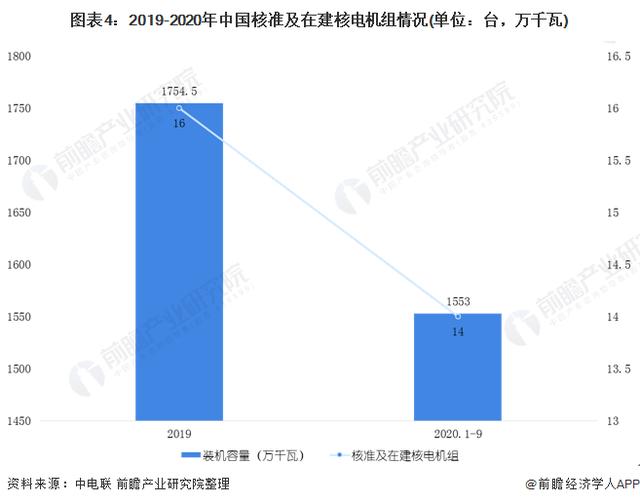 根據(jù)中電聯(lián)的數(shù)據(jù)顯示,截至2019年底,我國核準及在建核電機組16臺,裝機容量1754.5萬千瓦,位居世界第一。而截止到2020年9月底,在建核電機組14臺,總裝機容量1553萬千瓦。