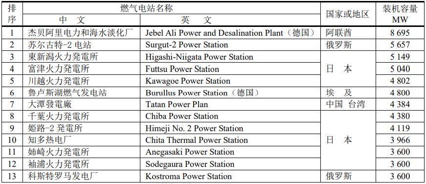 中國(guó)主要以燃煤發(fā)電為主,其次為燃?xì)獍l(fā)電的份額不高,但是進(jìn)展比較快。目前中國(guó)燃?xì)獍l(fā)電站如表。