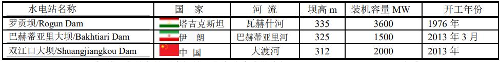 其次是伊朗巴赫蒂亞里河在建的巴赫蒂亞里大壩(Bakhtiari Dam),壩高325m,1500MW,工程造價20億美元,年發(fā)電量3TWh。排行第三是中國大渡河上的雙江口大壩(Shungjiangkou Dam),壩高312m。