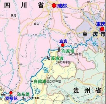 ▲ 在四川長江-金沙江段修建了四座世界級的水電站:向家壩、溪洛渡、白鶴灘、烏東德。這四座水電站裝機總?cè)萘窟_46508MW,為三峽水電站裝機容量22500MW的46508/22500=2.07倍。其年發(fā)電量為185.05/101.6=1.82倍。白鶴灘(Baihetan)僅次于三峽水電站成為中國第二大水電站。