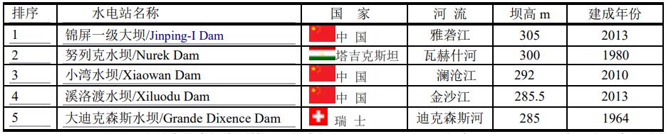 ▲ 2020年世界上最高高度超過135m的水壩有251座。目前最高的水壩是錦屏一級大壩(Jinping-I Dam),拱形水壩,壩高305m。其次是塔吉克斯坦瓦赫什河上的努列克大壩(Nurek Dam),300m。