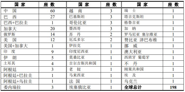 ▲ 世界上水電站裝機容量在1000MW以上的有198座,其中中國占據(jù)了60座,居世界總數(shù)的60/198=30%。其次為巴西、加拿大、俄羅斯。