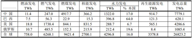 2020年水力發(fā)電前4個國家的電力結(jié)構(gòu)比較